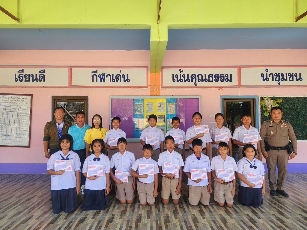 พร้อมชุดปฏิบัติการชุมชนและมวลชนสัมพันธ์ สถานีตำรวจภูธรพุทไธสง และนักเรียนนายสิบฝึกประสบการณ์เข้าอบรมบรรยายให้ความรู้ สร้างภูมิคุ้มกัน เตือนภัยออนไลน์ประชาสัมพันธ์ให้เด็กและนักเรียนมีความรู้เรื่องโทษภัยและอันตรายจากบุหรี่ไฟฟ้า กัญชา พืชกระท่อม และสารเสพติดชนิดอื่นๆมอบใบประกาศผู้สำเร็จการศึกษาโครงการการศึกษาเพื่อต่อต้านการใช้ยาเสพติดในเด็กนักเรียน (โครงการ D.A.R.E.ประเทศไทย)โดยผู้อำนวยการสถานศึกษา คณะครู และนักเรียนชั้นประถมศึกษา เข้าร่วมกิจกรรมในครั้งนี้