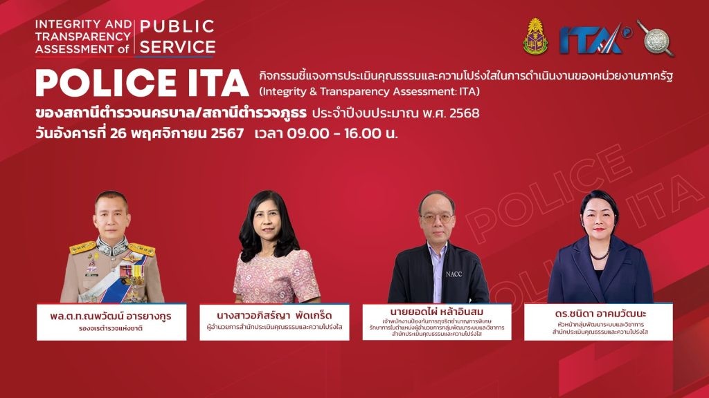 งานอำนวยการ แจ้งความคืบหน้าการดำเนินการประเมินคุณธรรมและความโปร่งใสการดำเนินงานหน่วยงานภาครัฐ (Integrity & Transperency Assessment : ITA) ของสถานีตำรวจ ประจำปีงบประมาณ พ.ศ. 2568